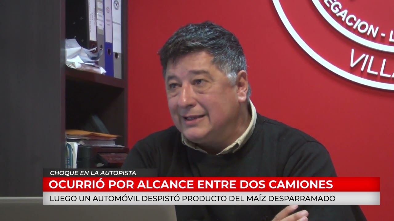 01/06/2022 Ocurrió por alcance entre dos camiones. Posteriormente, debido a que la carga de uno de ellos había caído sobre la carpeta asfáltica, un automóvil que circulaba por la zona se despistó. Los tres conductores fueron trasladados al Hospital Regional Pasteur con traumatismos diversos. Habla el jefe de los bomberos voluntarios, Gustavo Nicola.
