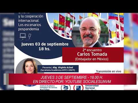 01/09/2020 Este jueves 03 de septiembre desde las 18 se realizará el Segundo Encuentro Del Seminario: Política Exterior y Cooperación Internacional Pos Pandemia en el Instituto de Ciencias Sociales de la UNVM. El invitado será Carlos Tomada, Embajador argentino en México. La presentación estará a cargo de la Abg. Virginia Achad, Secretaria Académica del Instituto, que nos invitó a participar en esta nota.